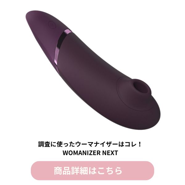 研究で使われた「Womanizer Next」は、3D吸引テクノロジーというものが使われています。これは、ただ空気の刺激を与えるのではなく、空気がねっとりとうずを巻くようにクリトリスにからみつくように吸い上げる刺激をつくりだすウーマナイザーの特別な吸引力です。これは一般の「吸うバイブ」では味わえないエロティックな刺激で、実際ラブピースクラブでもWomanizer Nextの人気は断トツに高いです。