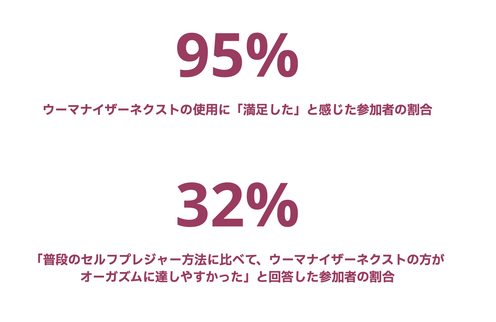 臨床研究は期間を二段階に分けて行いました。女性たちに実際にウーマナイザーを使っていただく期間、全くセルフプレジャーをしない期間、ウーマナイザー以外の方法でプレジャーした期間などを分けてその結果を詳細に報告していただいています。