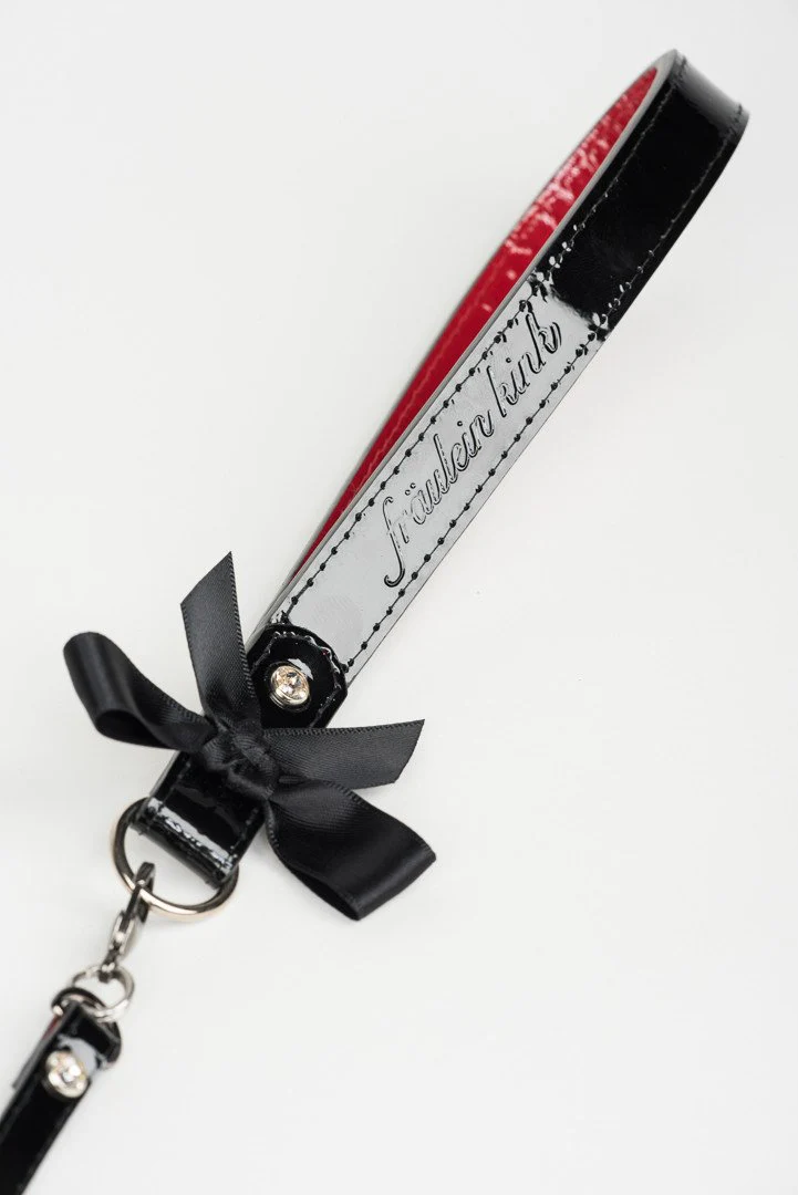 リードはブラックのエナメルレザー。カラーと、持ち手の繋ぐ部分にスワロフスキーを置くことで、 高級感がぐっと出ています。