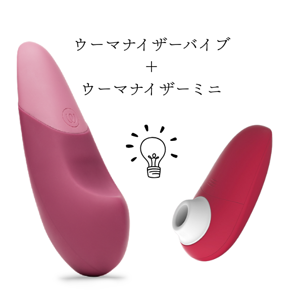 「吸引しない吸引バイブ」と、吸引ビギナーにオススメの「ウーマナイザーミニ」のハイブリッドセットです。
