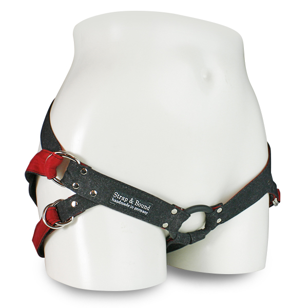 「デニム・ハーネス【ブラックレッド】」。