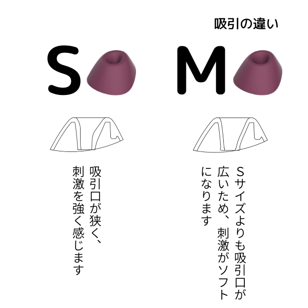 吸引口が狭いと(Sサイズ)、吸引の刺激をクリトリスが直に感じやすくなります。